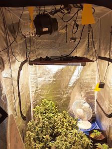 A single light can be adjusted the light intensity at liberty. In this tent I have Bruce banner from MSNL Big Brucefrom big bud seeds lemonchello from copycat Genetics and Lava Freeze from super sativa club they are 14 days old. More information on this amazing light.
